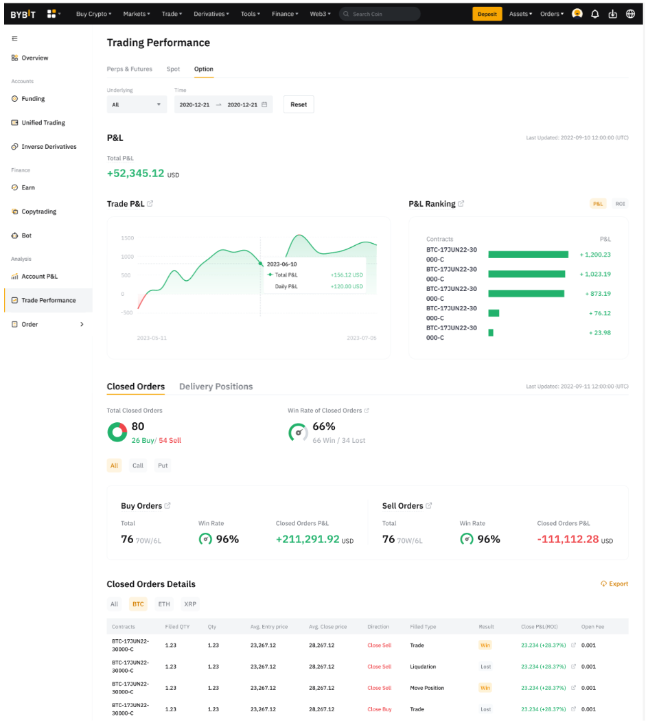 當前,期權的交易表現數據僅適用於統一交易賬戶用戶,其賬戶可在逐倉保證金、全倉保證金和組合保證金模式下查看。